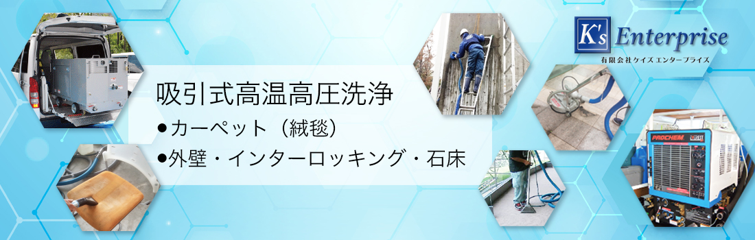 弊社では、施設のカーペットクリーニング、外構クリーニング(インターロッキング・石床・外壁など)において吸引式高温高圧洗浄機械「トラックマウントシステム」を採用しています。トラックマウントとは車載型のクリーニング吸引式高温高圧洗浄機械でカーペットクリーニング・外構クリーニングマシンの最高峰として広く利用されています。従来の高圧洗浄は水の跳ね返りが多く、作業現場を水浸しにすることもあり、汚水の処理や作業中に人が近寄らない様工夫する必要でした。弊社のトラックマウントシステムは、洗浄と同時に洗浄の際に出る汚水を回収するため、 人通りの多い場所や高作業に適してます。