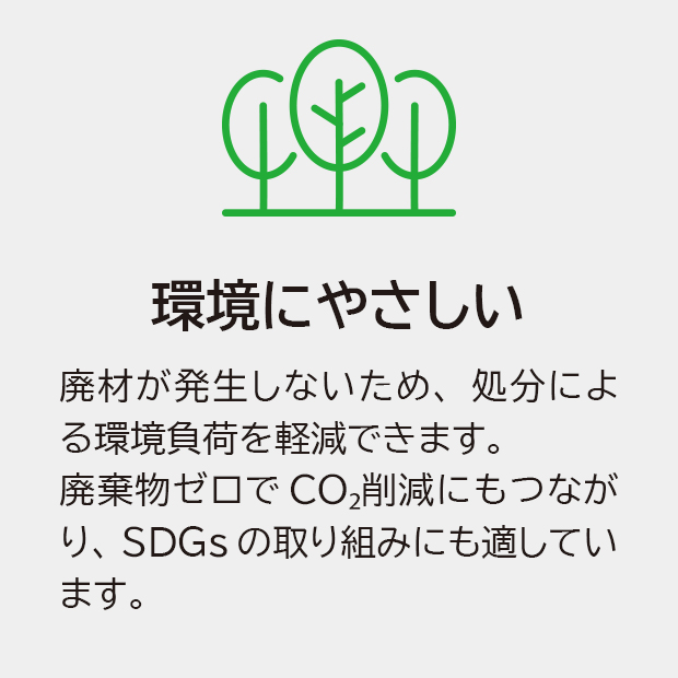 張替えに比べて大幅なコストダウンを実現し、廃材ゼロで環境にもやさしい再生工法です。 - スピーディ&柔軟な対応力
